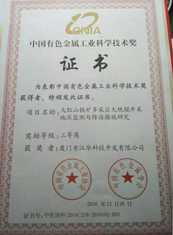 廈門市江華科技開發有限公司喜獲行業協會獎項: