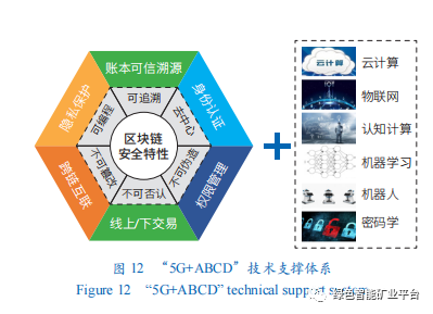 為實現國家能源產業健康、高質量發展,利用智能礦業、6S智能化系統、“5G+ABCD”技術(圖12)支撐體系助力能源產業安全,搭建國家能源與礦業安全生產智能化平臺、礦物產品交易與產業協作智能化平臺、礦業數據標準與信息安全保障系統,制定現代能源礦業治理體系,全面保障我國能源安全。
