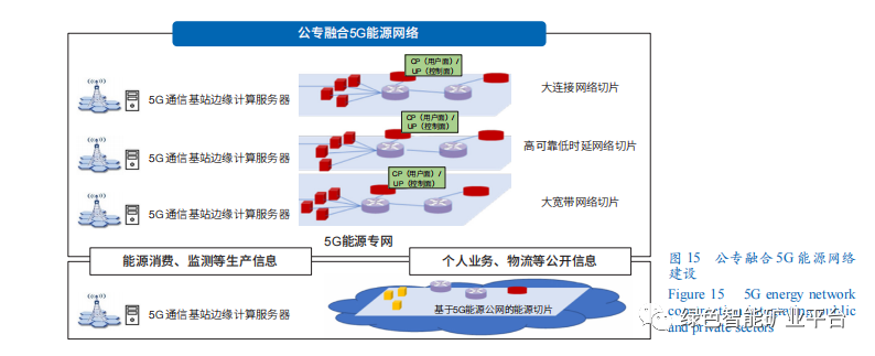 公轉融合的5G能源網絡。依據信息安全、傳輸與交互需求,建設公專融合5G能源網絡(圖15)。5G能源公網主要實現個人業務、物流等公開廣域信息傳輸;5G能源專網主要實現能源與礦業生產、消費等信息的局域或安全傳輸。